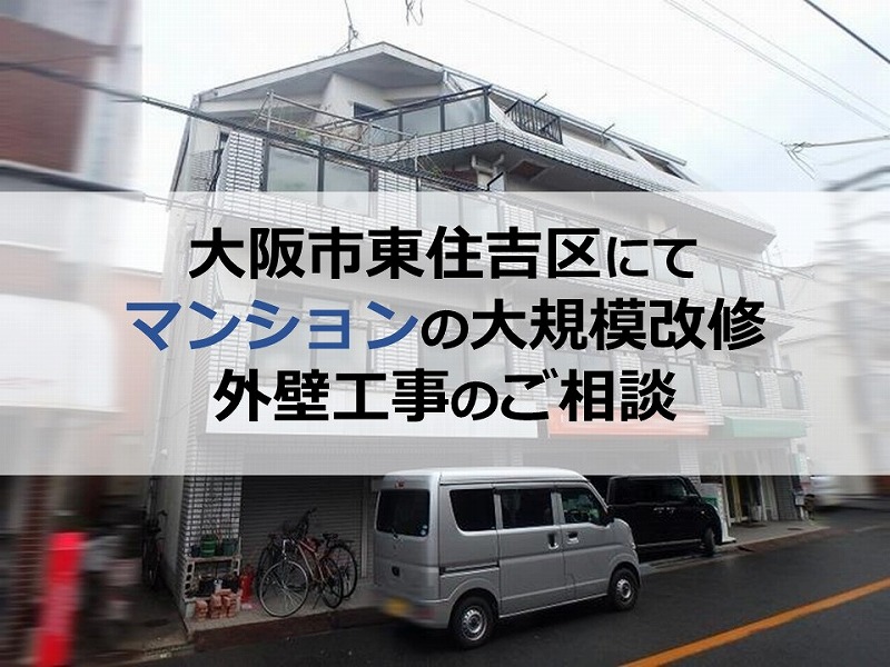 大阪市東住吉区の築34年のマンション(RC造)のオーナー様より外壁工事のご相談をいただきました。