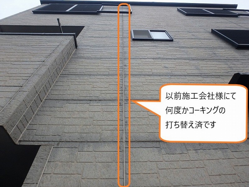 (※本来はサイディングの隙間にコーキングは不要ですが、新築時の防水シートの施工不良の可能性があったためコーキングを施工しました。)