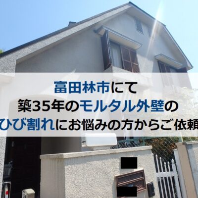 塗膜表面のひび割れだけでなく、モルタル下地をV字型に溝を作り補修領域を増やす工法をすることで根本からのひび割れ解決になります。