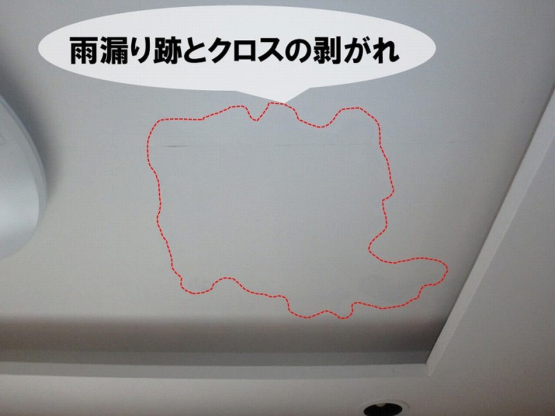 実際にひび割れからの雨漏りで天井クロスに雨染みができていました。