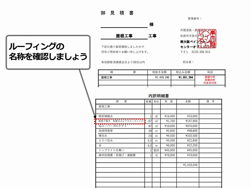 4.ルーフィングの種類が見積書に明記されているか確認しましょう
