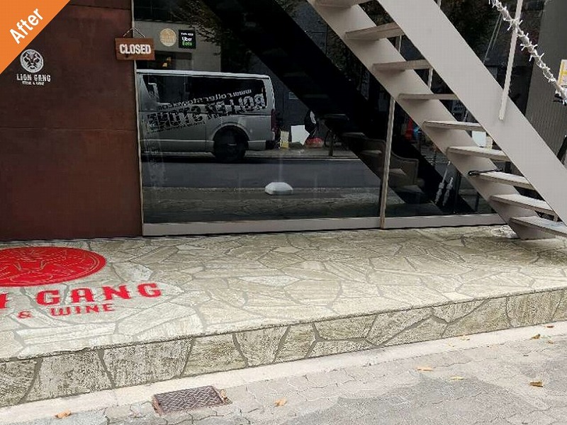 店舗の外と屋内にローラーストーンを施工した事例です。