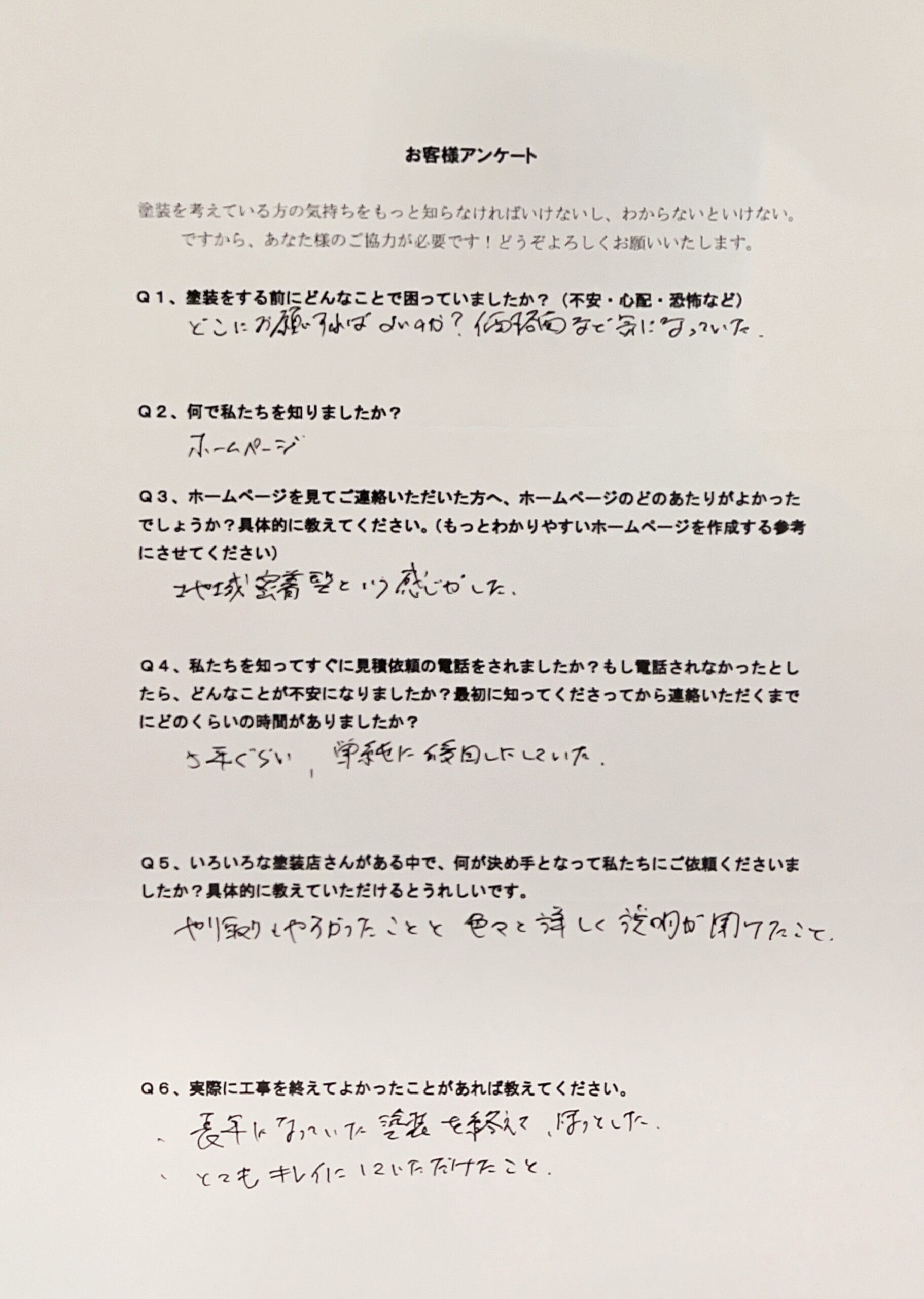 長年になっていた塗装を終えてほっとした。とてもキレイにしていただけたこと