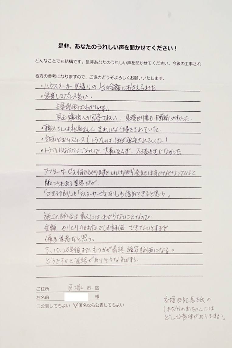 施工完了後のお客様の声