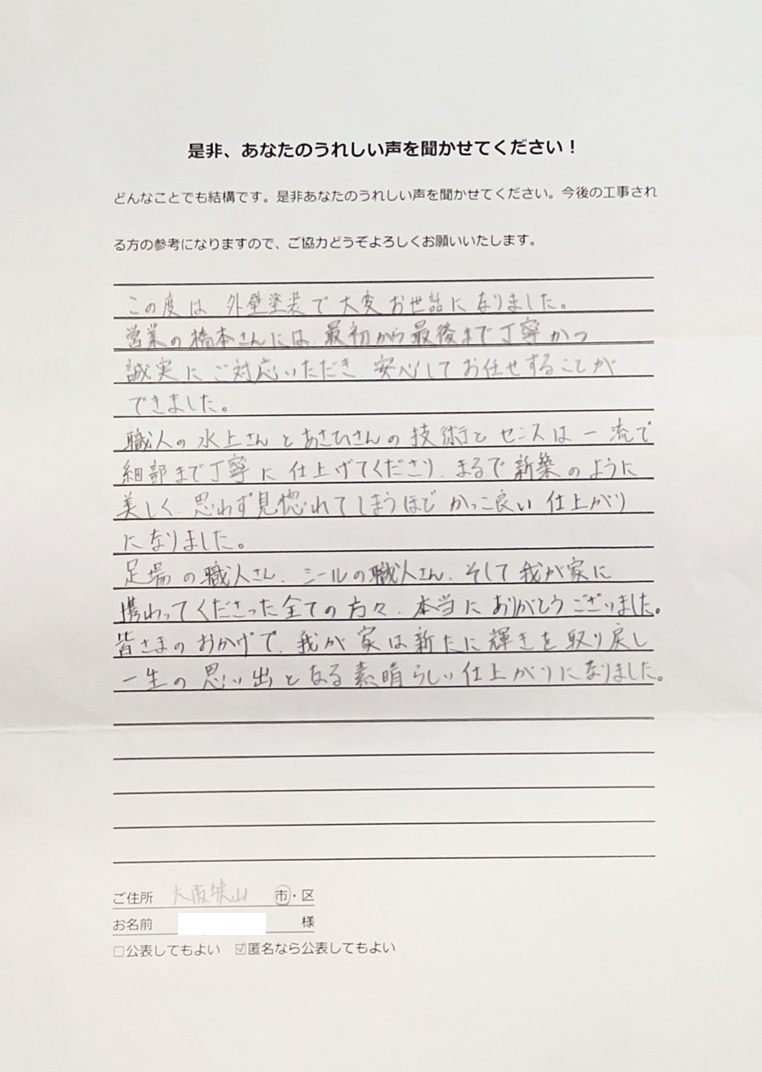この度は外壁塗装で大変お世話になりました。
