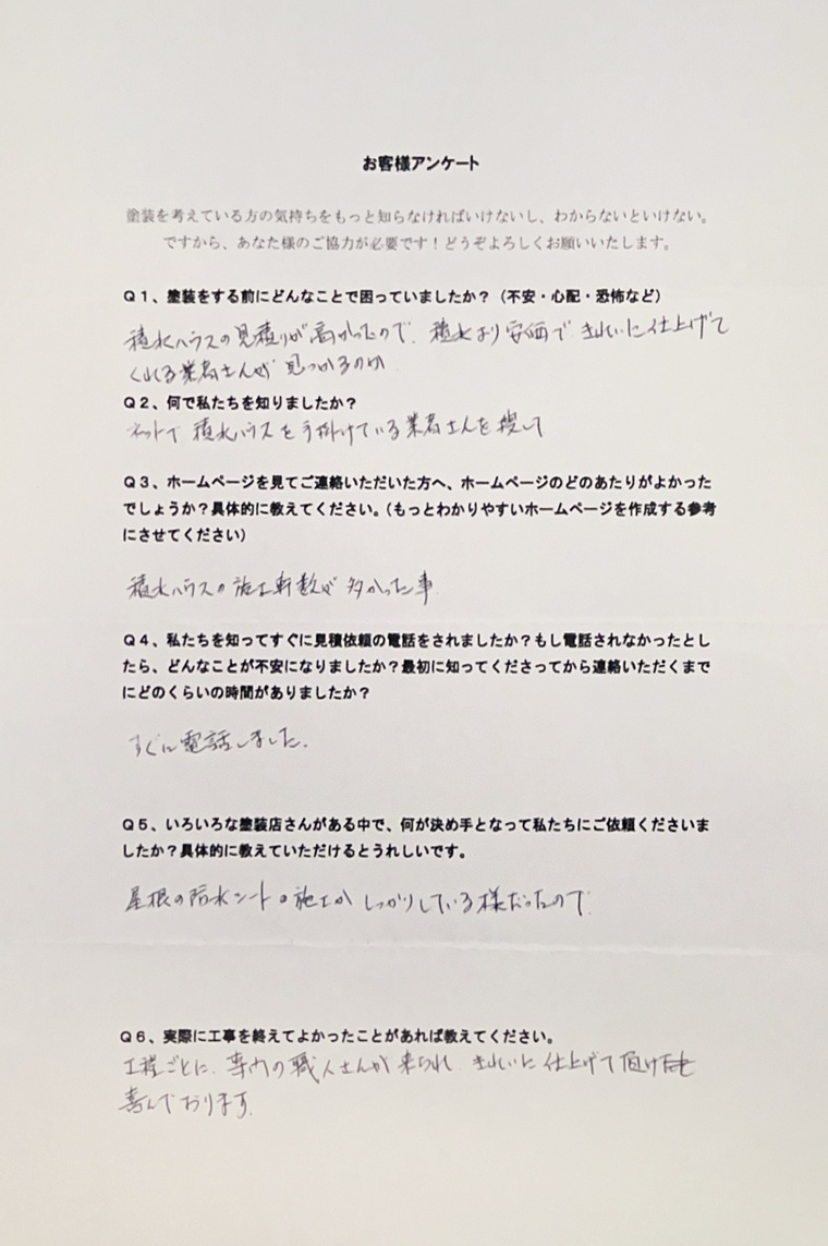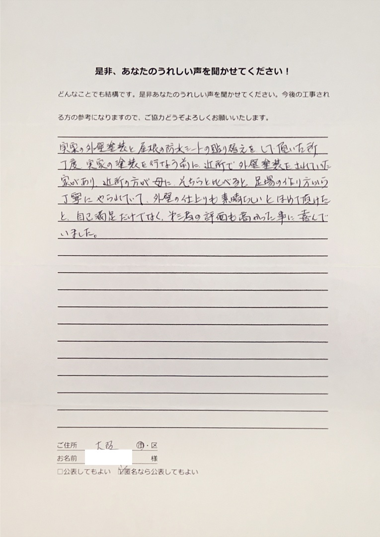 施工完了後のお客様の声
