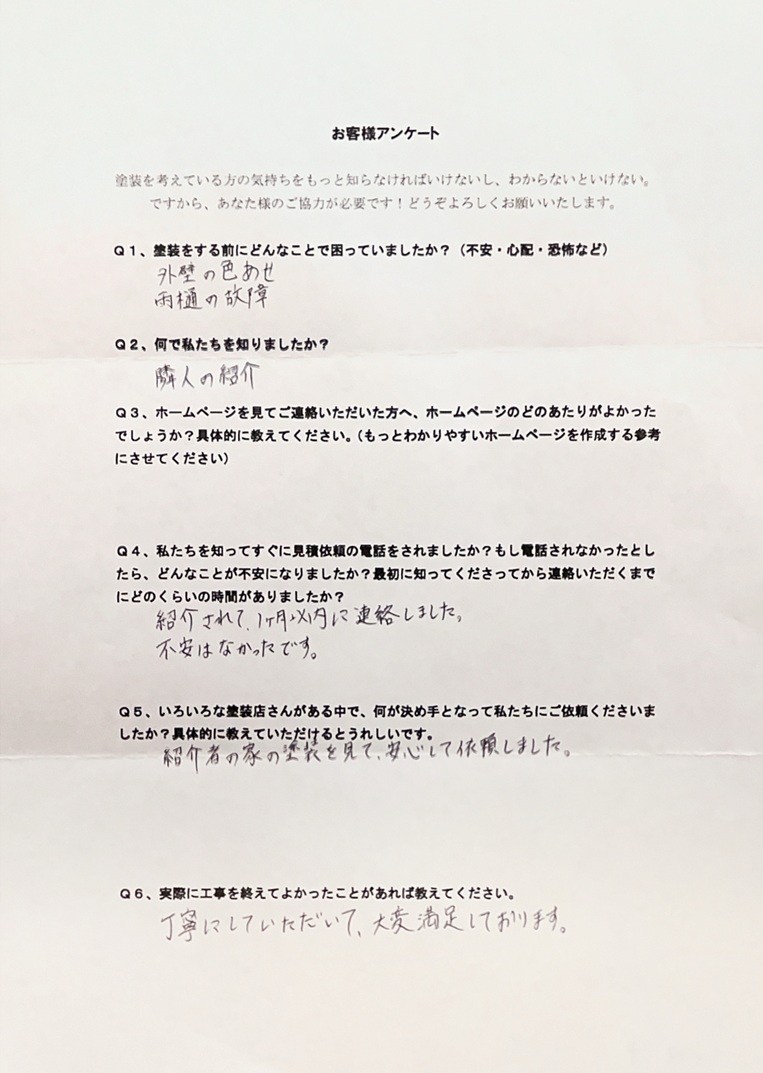 隣人の方からのご紹介で施工された明石市のお客様の嬉しい声