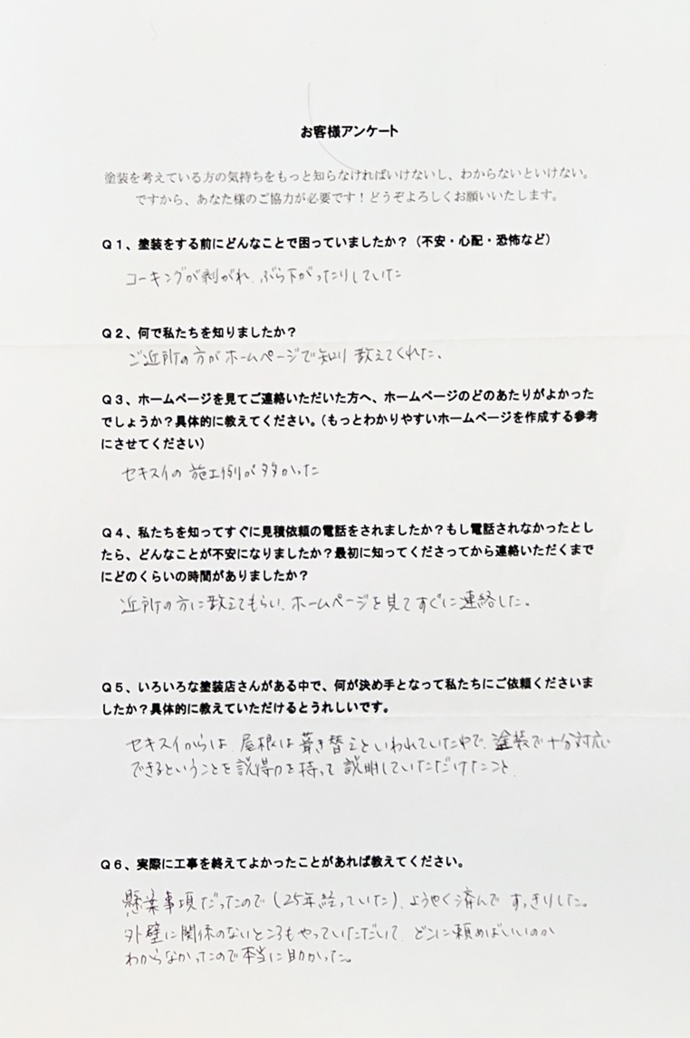 セキスイからは屋根は葺き替えといわれていた中で、塗装で十分対応できるということを説得力を持って説明していただけたこと