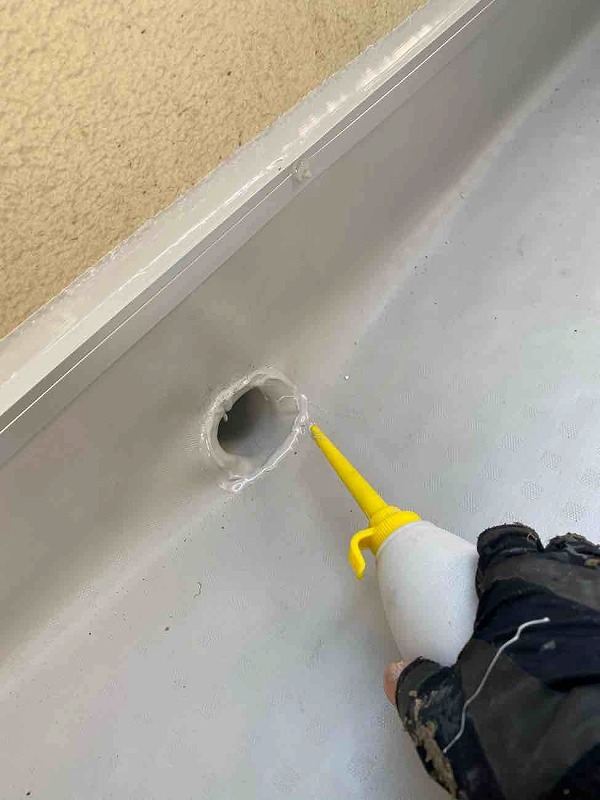差し込んだドレンの周辺には塩ビシート同士の継ぎ目が生じます。