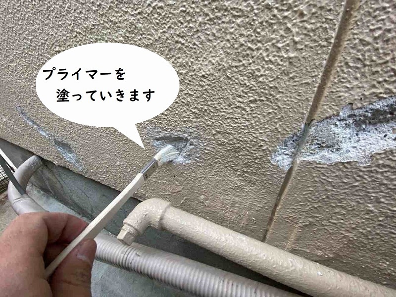 補修していく箇所にプライマーを塗っていきます。「下塗り材」という意味で使われています。