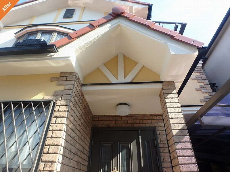 セメント瓦の朱色もアクセントになり、パキッとした明るい玄関になりましたね。