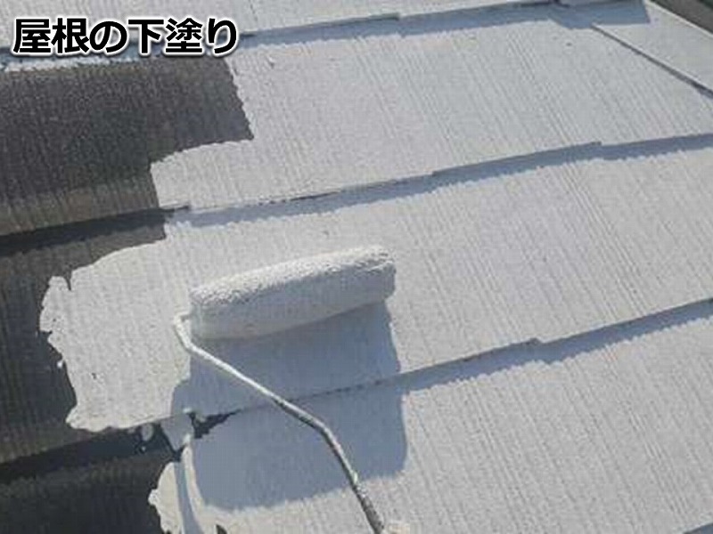 まずは屋根の下塗りで、屋根材自体を強化します。