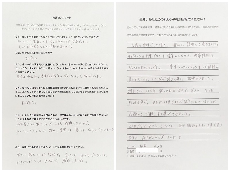 営業さんはじめ職人さんの方々が皆さんとても親切丁寧で、日中は仕事でほぼ留守にしていましたが信頼してお願いする事が出来ました。仕上がりがとても綺麗で毎日眺めてしまいます。本当にありがとうございました。