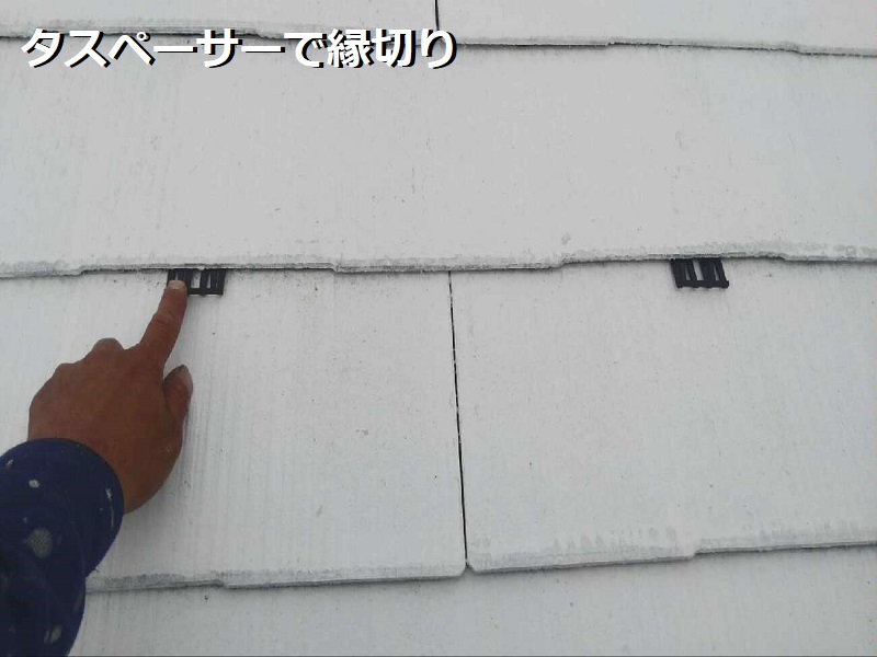 そうしたことを防ぐためにタスペーサーという器具を屋根材の隙間に挿入し適切な隙間を確保します。これを縁切りと呼びます😊