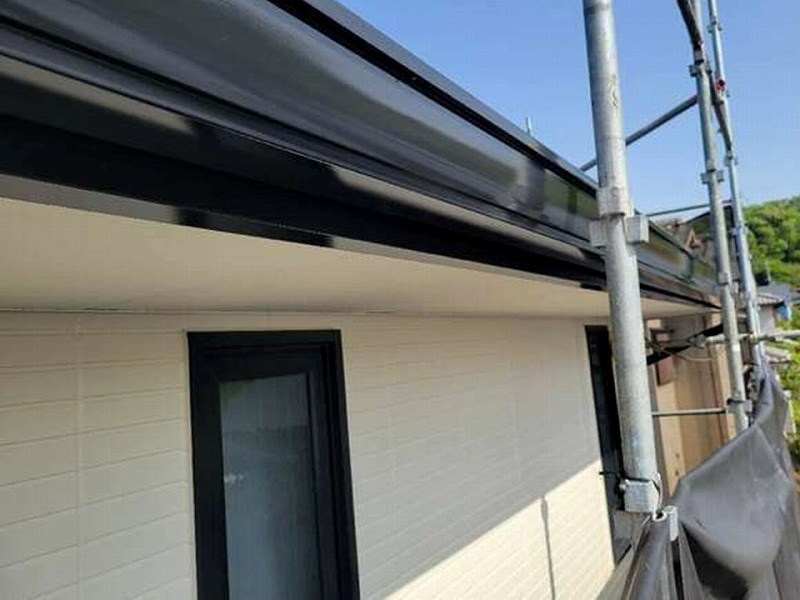 雨樋は1階の外壁に合わせてブラックカラーで塗装をします。