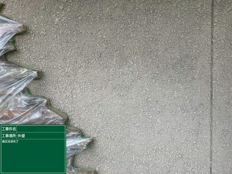 高圧洗浄で汚れやリシン仕上げの古い塗膜を取り除くことで、新しい塗料の密着性を抜群に良くしてくれるのです。