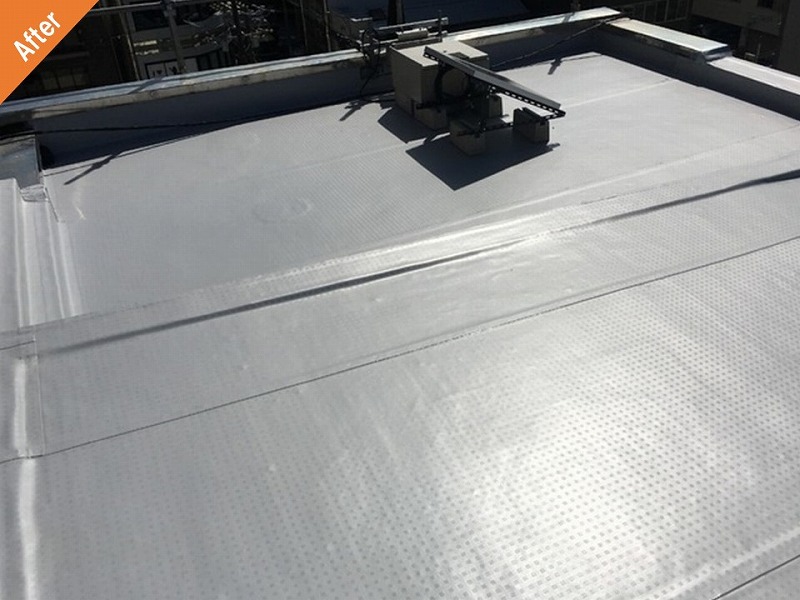 屋上も塩ビシート防水(100㎡)と改修ドレン工事をしたことで、雨漏りが改善しました!