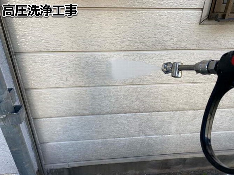 塗料の密着が良くなるように、古い塗膜や汚れを高圧洗浄でしっかりと洗い流します。
