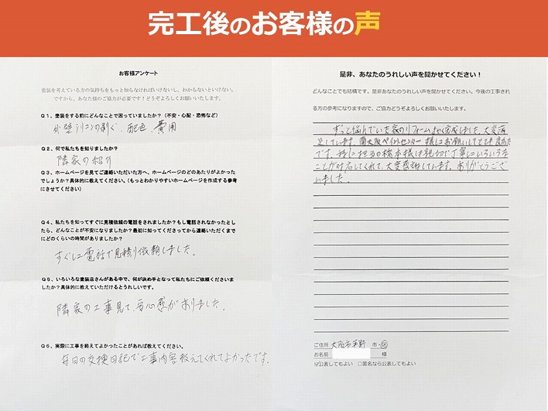 南大阪ペイントセンター様にお願いしてとても良かったです。