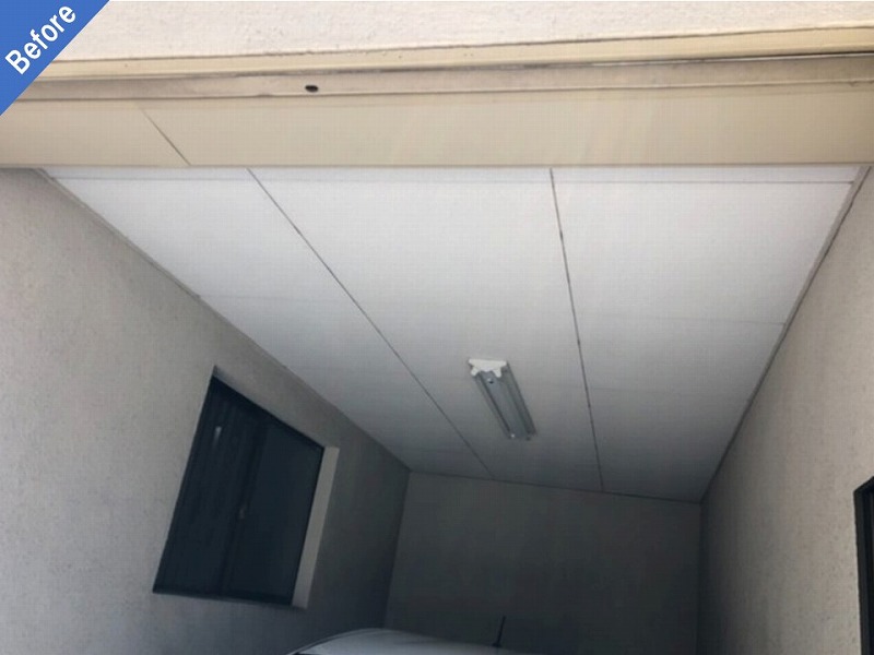 ガレージの軒天井にはカチオン系塗料を使用して中塗りと上塗りに分けて塗り重ねます。