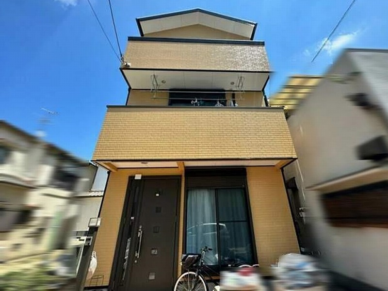羽曳野市で窯業系サイディングとスレート瓦の3階建て戸建てへ外壁塗装
