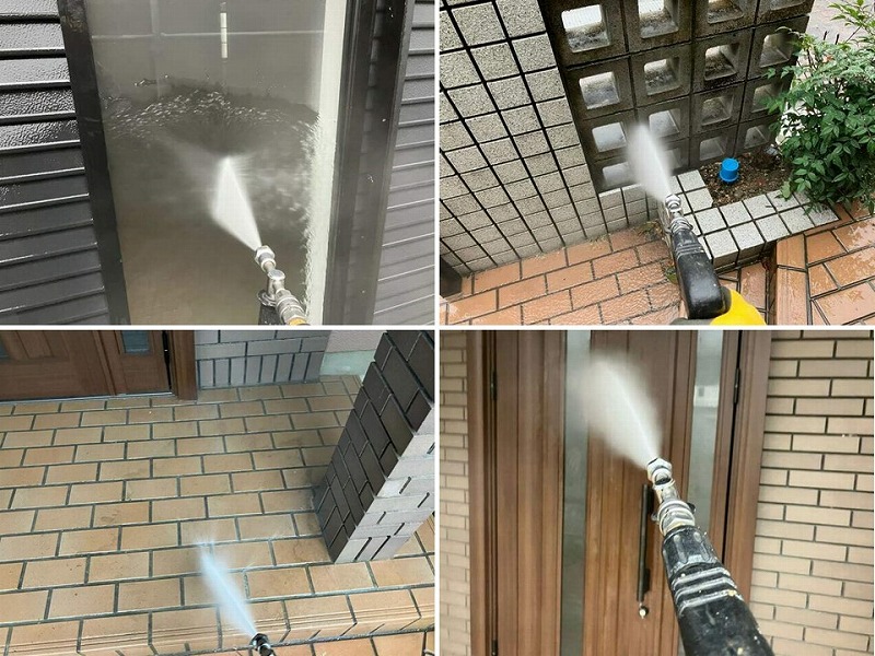 業務用高圧洗浄で外壁の隅々まで汚れを洗い流します。