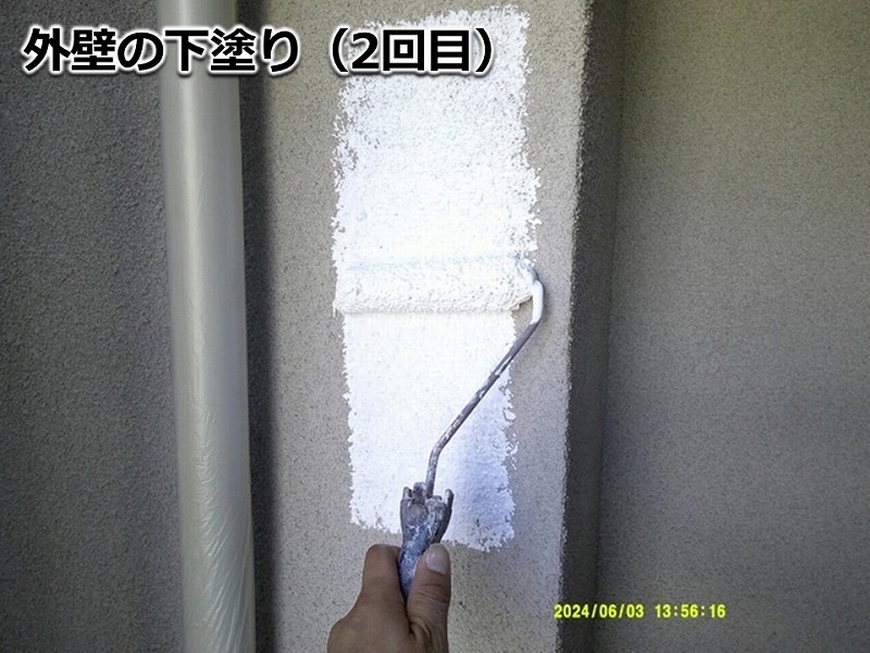 外塀も下塗り、中塗り、上塗りの工程で塗料を塗布します。