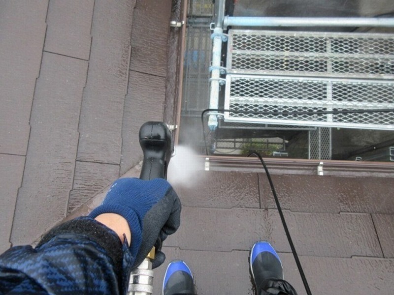 屋根に付着した汚れや旧塗膜などが残っていると塗料が上手く密着してくれないので入念に洗浄いたします。