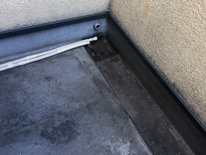 雨漏りしていた正面ベランダは塩ビシート防水工事で対応しますので、こちらは雨漏りしていない裏側のベランダです。