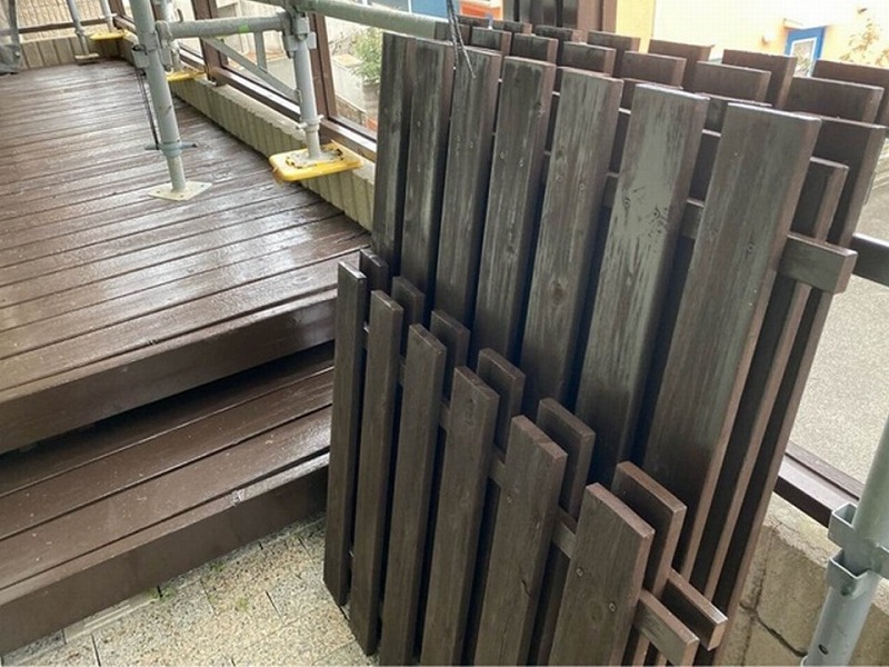 建物の雰囲気に調和した木製テラスも塗装対象に含んでおります。