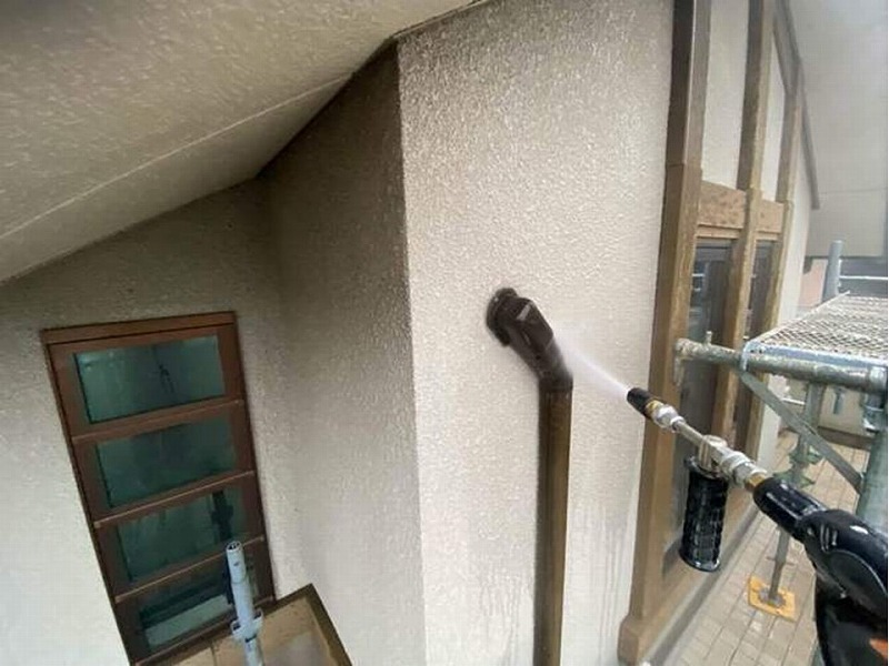 塗装の密着性を高めるために欠かせない工程で、積水ハウスのスタッコ仕上げにも適切な圧で丁寧に対応しています。