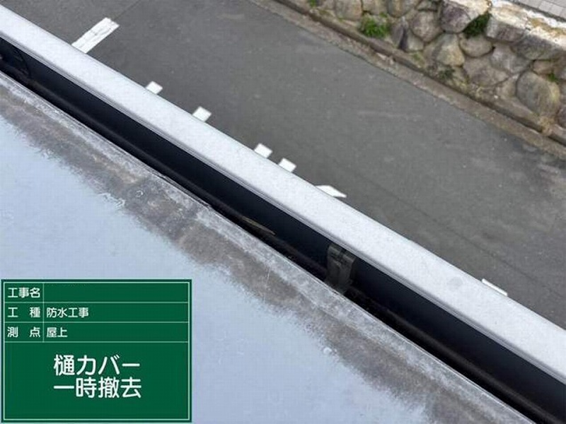 防水施工の妨げにならないよう一時的に取り外していた排水部のカバーを元に戻します。