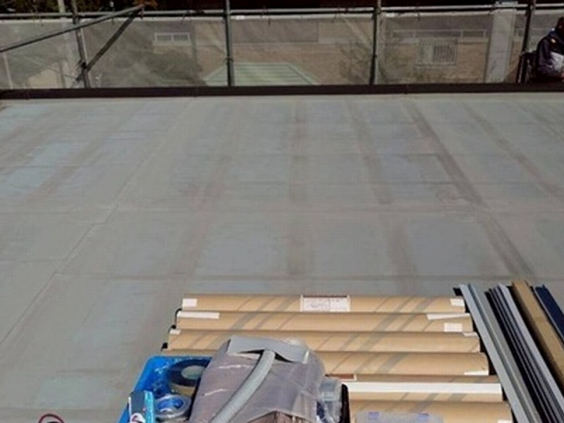 塩ビシート防水はコーキング工事の乾燥期間が今回1週間ほどかかるため、その乾燥期間を活用して防水工事を行います。