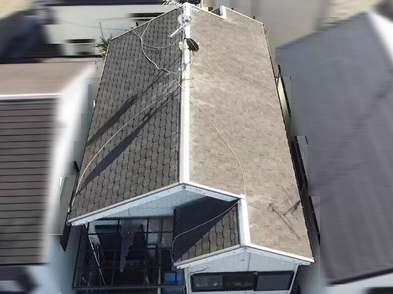 スレート瓦自体もかなり脆くなっており、表面の塗膜が機能していない状態でした。