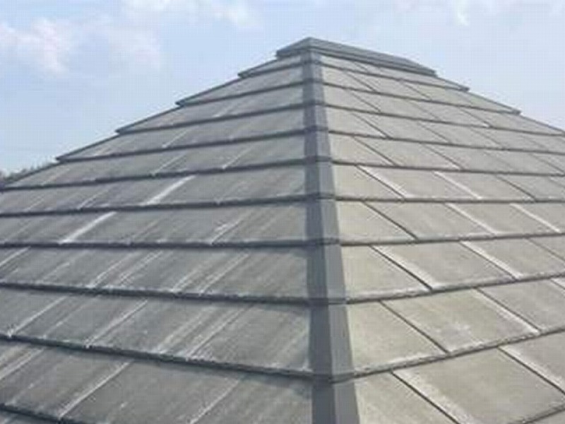 現地調査では屋根にセメント瓦が使用されており、長年の紫外線や風雨の影響により塗膜の劣化が進行している状態でした。