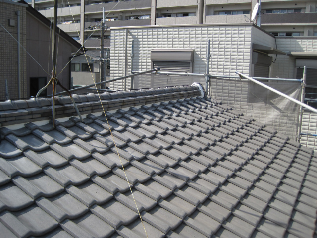 屋根の漆喰の剝がれや劣化がありましたので、漆喰の補修工事も同時に行いました。もとの劣化した漆喰は撤去し、新たに漆喰を詰め直す工事です。